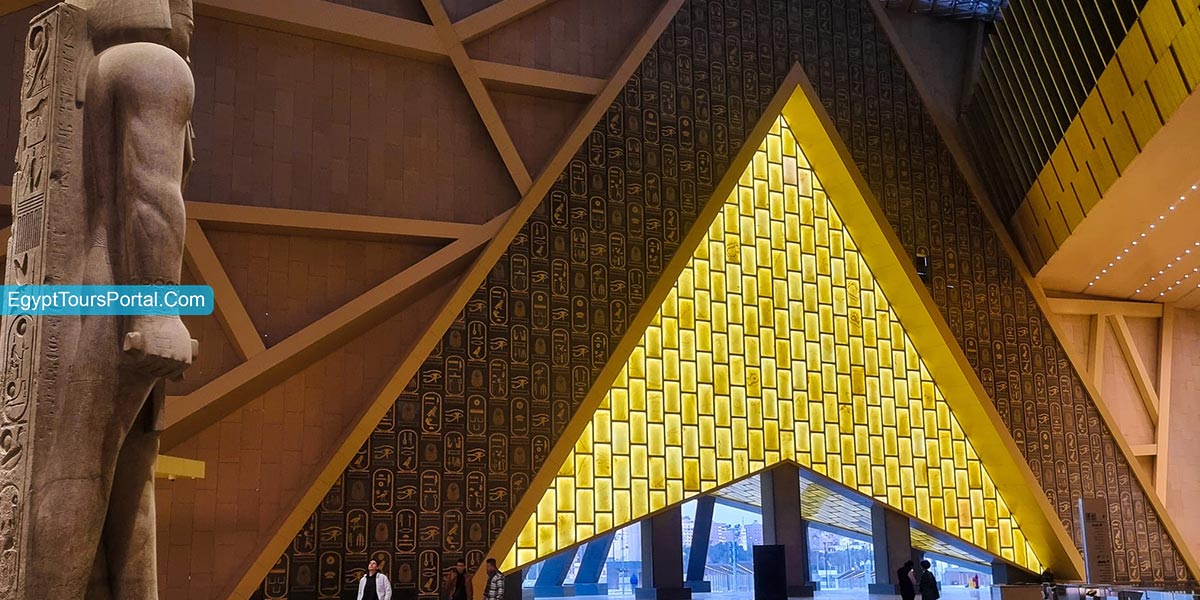 El Gran Museo Egipcio es un portal dorado que conduce a las magníficas creaciones del antiguo Egipto, plasmadas en cautivadores tesoros arqueológicos, en armonía con las majestuosas pirámides de Giza, y que abarca casi 490.000 metros cuadrados. Sirve como puerta de entrada a 5.000 años de historia, iluminando el arte, la espiritualidad y el legado perdurable del antiguo Egipto para las generaciones venideras. El GEM está diseñado para albergar uno de los centros de conservación más grandes de Oriente Medio, junto con laboratorios de investigación e instalaciones educativas dedicadas a la preservación del patrimonio egipcio. Todos pueden maravillarse con tesoros como el Obelisco Colgante, el coloso de 11 metros de Ramsés II y la colección completa de más de 5.000 objetos de Tutankamón.