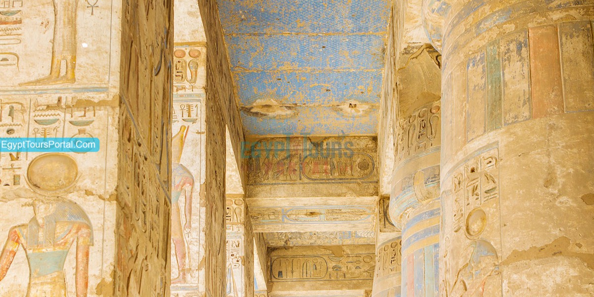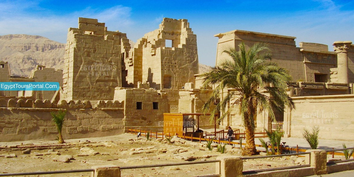 El increíble templo de Medinet Habu se encuentra en las colinas tebanas, en la orilla occidental del río Nilo. Fue construido por Ramsés III (1187–1156 a.C.) como su templo funerario y estaba dedicado al dios creador Amón. Se creía que este lugar era una zona sagrada. El templo posee magníficos diseños artísticos que muestran la derrota de los pueblos del mar.